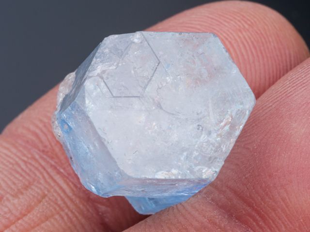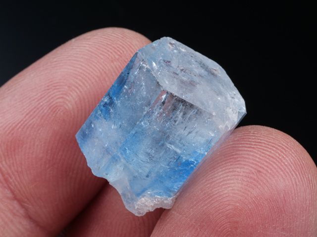 Small crystal of aquamarine variety of beryl from Pech. The crystal is excellent: lustrous faces, medium color, and good condition (there are minute nicks on a few termination edges).