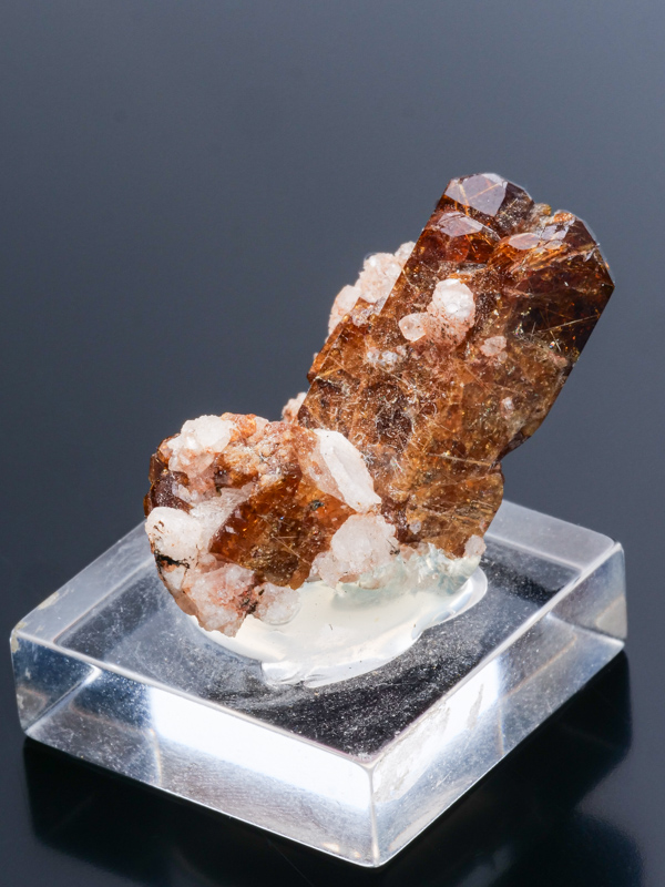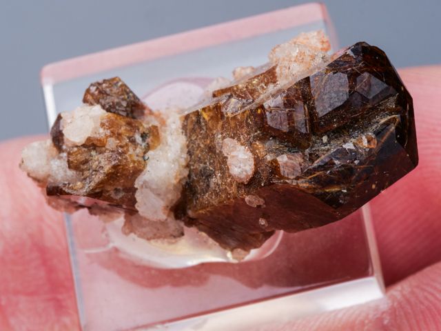 A large, glassy, tabular, reddish-brown bastnasite crystals from Zagi Mountain, Pakistan.A large, glassy, tabular, reddish-brown bastnasite crystals from Zagi Mountain, Pakistan. This main crystal is complete, glassy, gemmy, and has great color to it. No visible damage.
