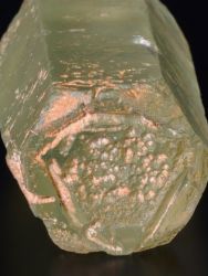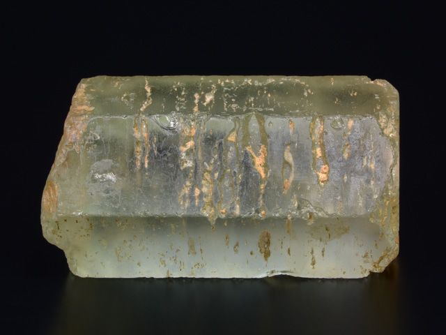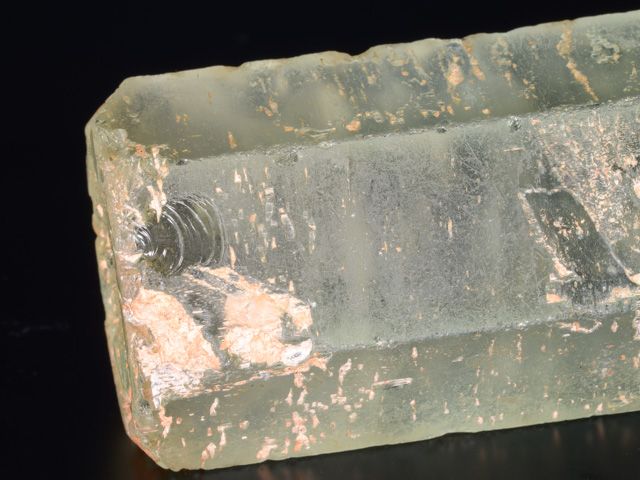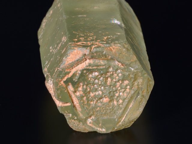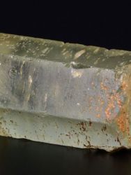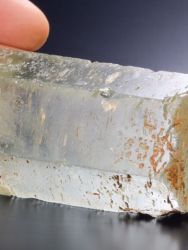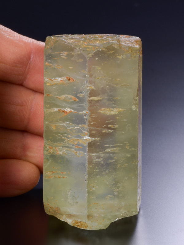 Nice hexagonal Beryl crystal of the variety “Aquamarine” from Teofilo Otoni, Minas Gerais, Brazil.Nice hexagonal Beryl crystal of the variety “Aquamarine” from Teofilo Otoni, Minas Gerais, Brazil. An off-matrix specimen, the prism faces are sub-lustrous, slightly waxy appearance with stepped growth structures while maintaining a very smooth surface. There are chips, including two on the termination.