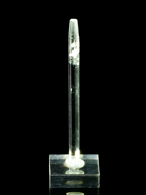 Akvamarín z pegmatitové lokality Sakangyi v Burmě (Myanmar). Kámen je ukončený, uvnitř krystalu v 95% brousitelně čistý a velmi lesklý. Velmi kvalitní a velký (zajímavý poměr délka / šířka) kámen vhodný do sbírek či jako investice. Bez poškození! Vzorek je dodáván s plastovým podstavcem.