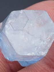 Small crystal of aquamarine variety of beryl from Pech. The crystal is excellent: lustrous faces, medium color, and good condition (there are minute nicks on a few termination edges).