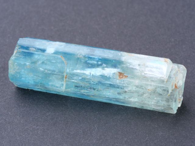 Hezký příjemně modrý krystal akvamarínu z mongolské lokality Hutag Ull Ord. Krystal je lesklý a poměrně čistý. Velmi zajímavý kámen s ukončením a minimálním poškozením.