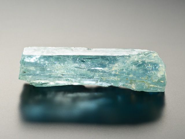 This blue colored crystal of aquamarine is transparent. Typical and precious material from mongolian Hutag Ull Ord.