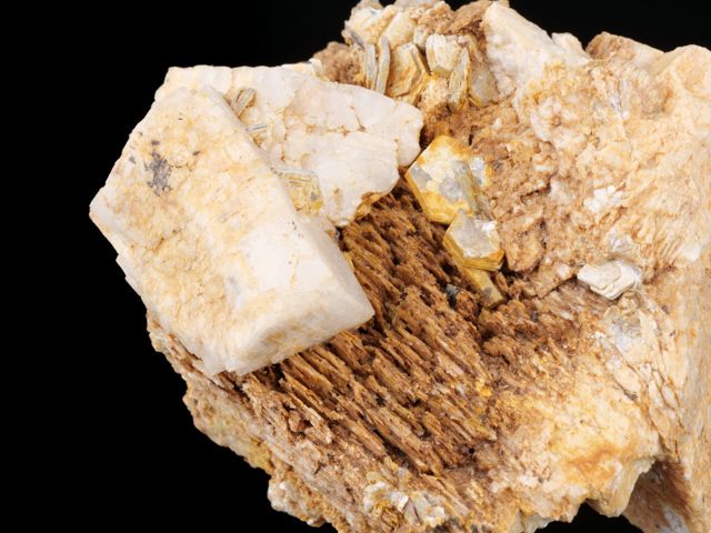 A nice display specimen with a lustrous albite with light orange feldspar crystal and mica.A nice display specimen with a lustrous albite with light orange feldspar crystal and mica. Very nice material from typical czech locality Dolní Bobrová.