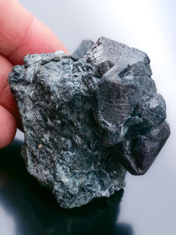 TOP drúza alexandritu z nového nálezu v Zimbabwe. Kámen zbarvený železem a chrómem silně pohlcuje centrální část světelného spektra, které do kamene vstupuje a má jiné složení ve dne při přirozeném světle slunce a jiné při jakémkoli umělém osvětlení - tzv. barvoměna alexandritu. Vzorek focen pod umělým světlem - na denním světle má příjemnou velmi tmavou zelenou barvu. Při prosvícení je krásně zbarven dočervena. Krystaly na drúze dosahují velikosti až 3,2 cm. Super velký vzorek s hezkou barvoměnou. Alexandrit patří mezi nejcennější drahokamy a je nejvzácnější varietou minerálu chryzoberylu. Jedná se o raritní kámen, který je při své velikosti, barvoměně a kvalitě jednoznačně dobrou investicí.