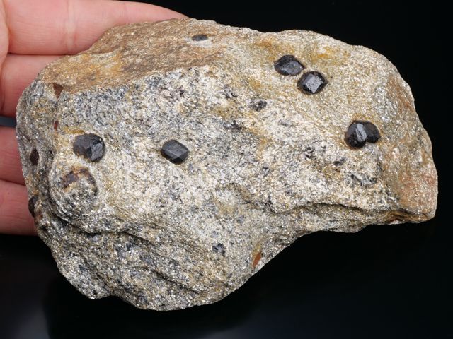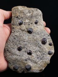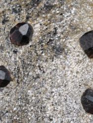Many almandine garnet crystals in schist matrix from the well known Zlatý Chlum in Czech Republic.Many almandine garnet crystals in schist matrix from the well known Zlatý Chlum in Czech Republic. The crystals reach 1.3 cm wide with dark red coloration and translucency and are well exposed from the schist. Old find - 1966.