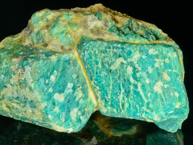 Very uncommon on the market, compared to Colorado and Ethiopian material - a Russian amazonite.Very uncommon on the market, compared to Colorado and Ethiopian material - a Russian amazonite, actually a really fine one. Though the crystals are clean and in good condition, a few show damage upon close inspection, but they are minor compared to the relative size of the specimen.
