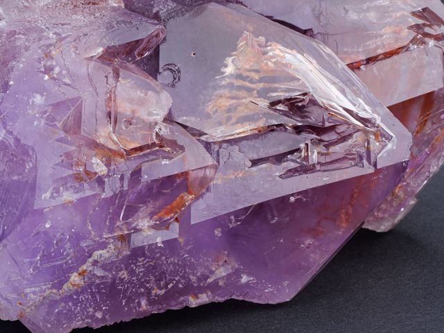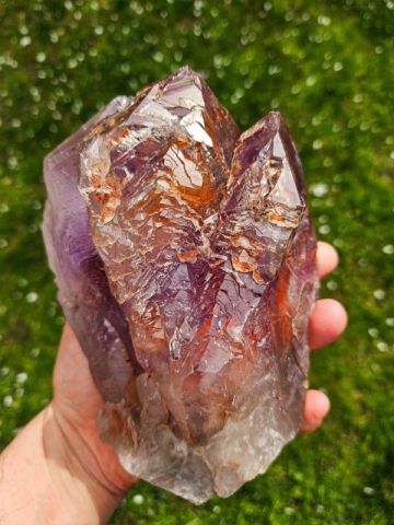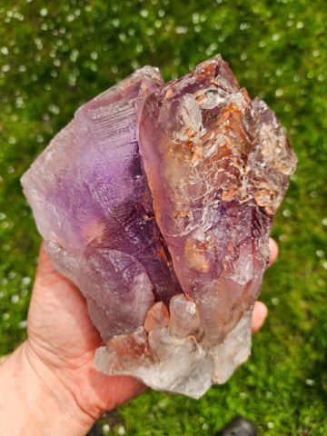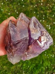 Zajímavě tvarovaný velký multikrystal ametystu. Tvar a zajímavá vnitřní struktura společně s krásně fialkovou barvou jsou to, co dělají tento vzorek zajímavým. Ukončený multykrystal má jen drobná setření hran (do značné míry přirozené) ukončení. Uvnitř drobná 3 mm plynokapalná inkluze. Super kus do sbírky.