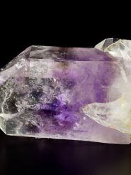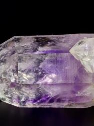 Krystal ametystu světle fialové barvy s libelou (cca 1 mm) ve střední části krystalu.Krystal ametystu světle fialové barvy s libelou (cca 1 mm) ve střední části krystalu. Plynokapalná inkluze je pohyblivá (cca na ploše 10x7 mm). Vzorek má příjemnou barvu, nepoškozené ukončení a skvělý lesk.
