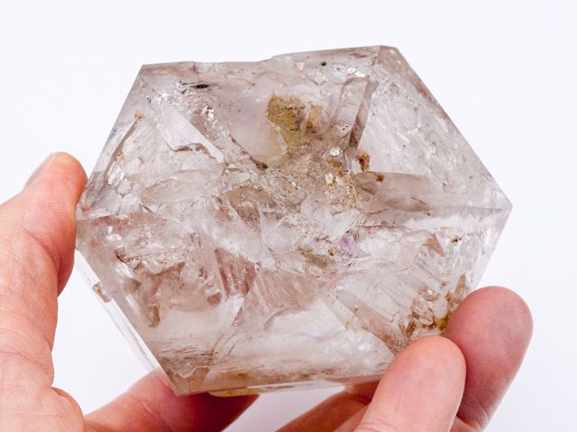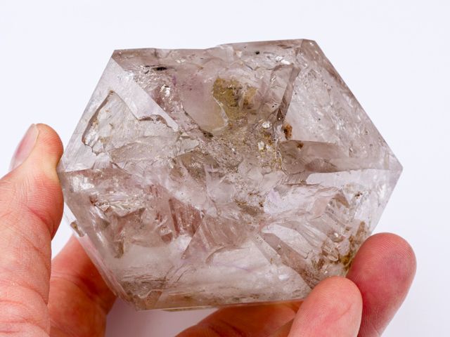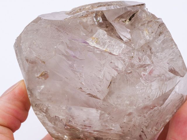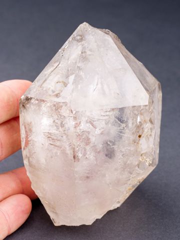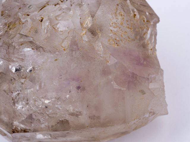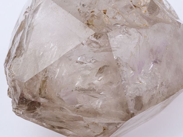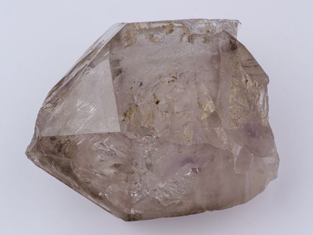 Relativně čistý krystal záhnědy s ametystovými šmouhami. Tvar (částečně žezlovitý růst) a zajímavá vnitřní struktura společně s fialkovou šmouhou jsou to, co dělají tento vzorek zajímavým. Oboustranně ukončený krystal má drobné setření hran (do značné míry přirozené). Vzorek pochází z naší těžby v Tanzanii a garantujeme 100% přírodnost a původ. Super kus do sbírky.