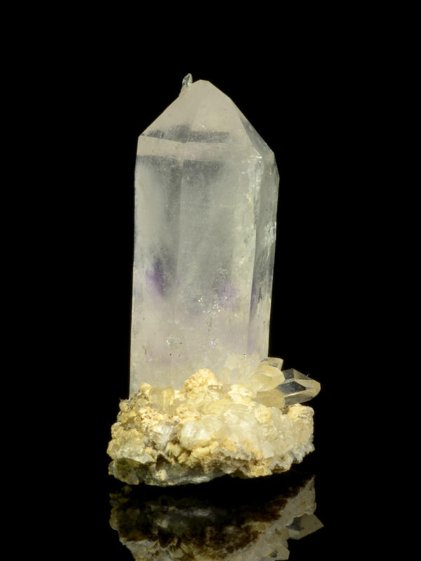 Srostlice krystalů ametystu světle fialové barvy. Vzorek má nepoškozené ukončení, výborný lesk a především výbornou kompozici krystalů. Na drobné podložce je i několik krystalů kalcitu. Hezký a velký zástupce africké lokality.