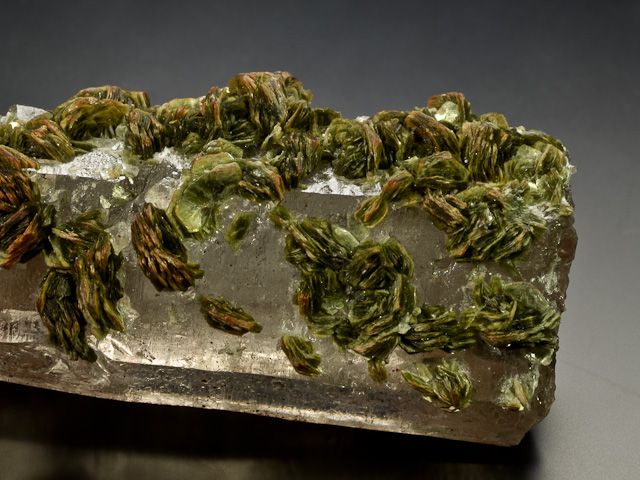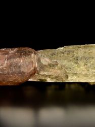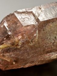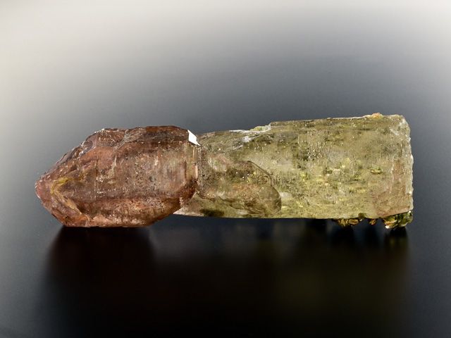 Skvělá ukázka žezlovitě rostlého ametystu z lokality Karur. Z 9,2 cm velkého základního krystalu křišťálu vyrůstá 5,8 cm velký světle fialový krystal tvořící hlavu žezla (uvnitř je pokračování základního krystalu čiré barvy). Lesklý vzorek se slídou po boku základního krystalu.