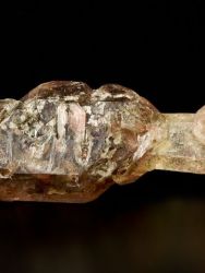 Skvělá ukázka žezlovitě rostlého ametystu z lokality Karur. Z 3,1 cm velkého základního krystalu křišťálu vyrůstá 5,0 cm velký světle fialový krystal tvořící hlavu žezla (uvnitř je pokračování základního krystalu sytě fialové barvy). Lesklý vzorek s drobným poškozením na špičce krystalu.