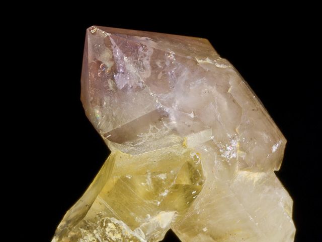 Here we have a lustrous scepter amethyst quartz specimen from a new find in Hallelujah Junction in California.Here we have a lustrous scepter amethyst quartz specimen from a new find in Hallelujah Junction in California. This specimen features a very sharp, lustrous, well formed, defined yellow/smoky/violet color scepter crystal with a distinct dual-tone color variation. Scattered damage to the crystal edges and termination throughout.