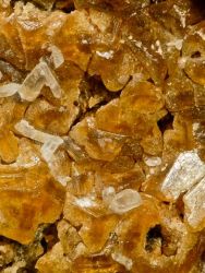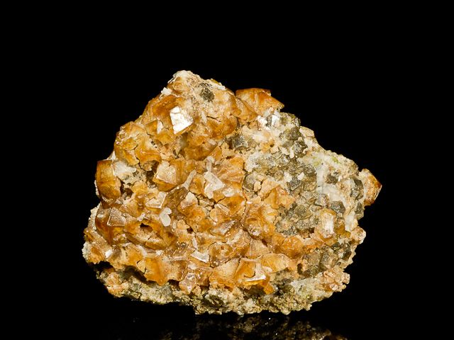 Beautiful, sharp and lustrous, honey-brown andradite garnet dodecahedrons are very aesthetically clustered on the quartz-rich matrix.Beautiful, sharp and lustrous, honey-brown andradite garnet dodecahedrons are very aesthetically clustered on the quartz-rich matrix. The garnets reach 1.0 cm and the 0.5 cm, terminated needle quartz crystal set on the andradites is a fine accent.