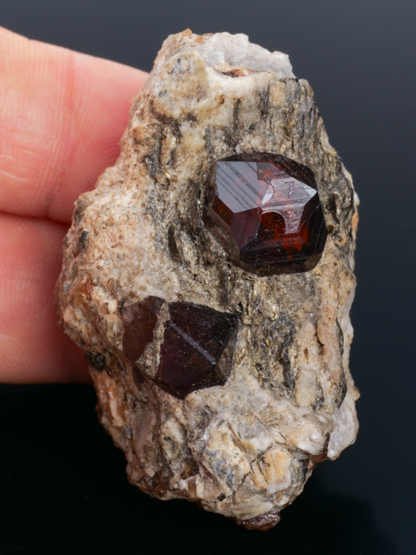 Drúza tmavě oranžových krystalů andraditu na podložce z lokality Antetezambato. Větší z krystalů měří 15 mm. Nepoškozený vzorek.
