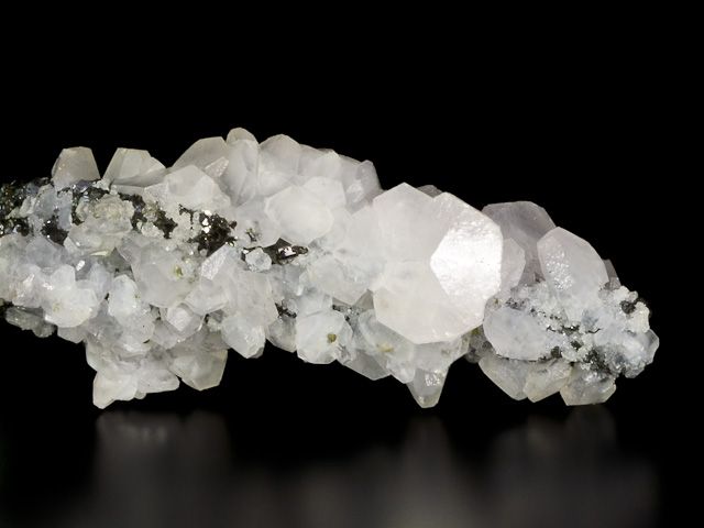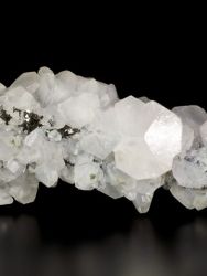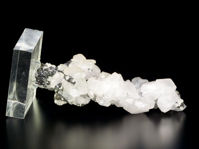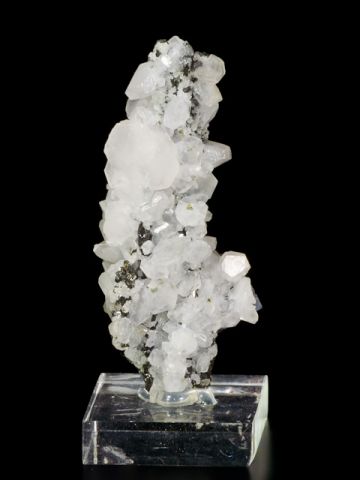 Estetická ukázka antimonitu s kalcitem z lokality Dalněgorsk. Hlavní krystal antimonitu dosahuje velikosti 62 mm je pokryt lesklými krystaly kalcitu. Vzorek dodáván na akrylovém podstavci. Vzácný typ vzorku pro danou lokalitu.