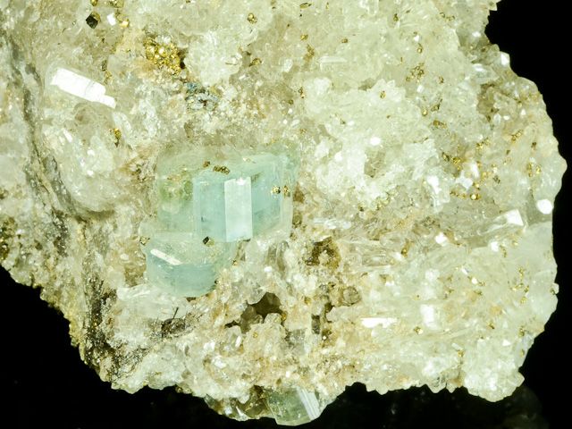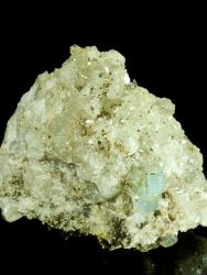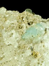 Bohatá ukázka několika velkých modrých krystalů apatitu o velikosti do 1,6 cm na křemenné podložce.Bohatá ukázka několika velkých modrých krystalů apatitu o velikosti do 1,6 cm na křemenné podložce. Estetičnost vzorku je umocněna krystaly křišťálu a pyritu do velikosti 2 mm. Vzorek není nijak poškozen, případně lze po podrobném prozkoumání nalézt několik velmi malých kontaktů z dutiny.