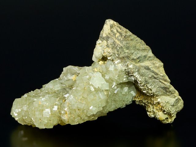 A fine specimen featuring various transparent, tabular, greenish Apatite crystals associated with muscovite crystals.A fine specimen featuring various transparent, tabular, greenish Apatite (var. Fluorapatite) crystals associated with muscovite crystals. From the famous Panasqueira Mine, Panasqueira, Covilhã, Castelo Branco District, Portugal.