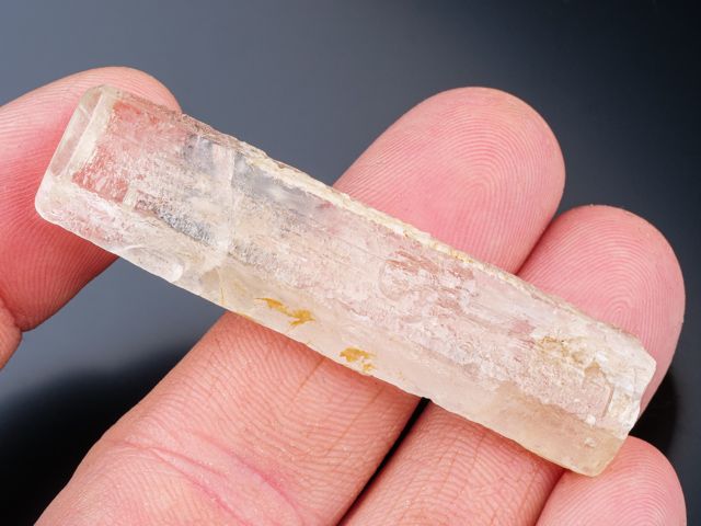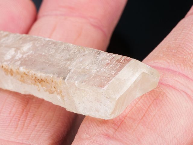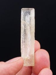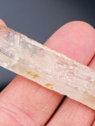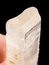 Krystal lesklého aragonitu medové barvy. Velice kvalitní kámen, který je z velké části čistý a využitelný i jako brousitelná surovina.