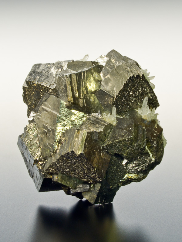 Heavy arsenopyrite crystals with brassy quartz crystal that reach only 0.4 cm. Classic Yaogangxian specimen of great quality.