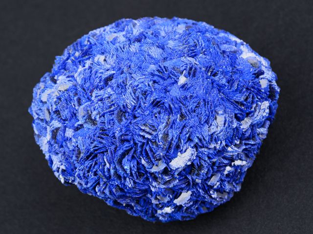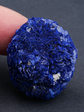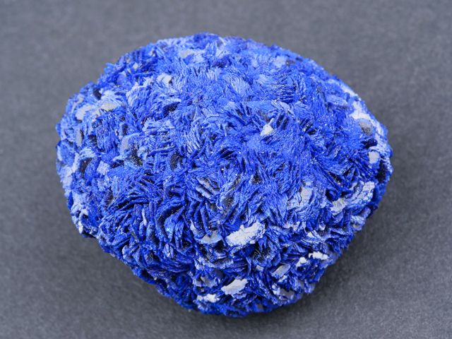Navzdory kvalitě a množství materiálu z Rubcovsku bylo na lokalitě překvapivě málo vzorků uhličitanů mědi jako azurit nebo malachit.Navzdory kvalitě a množství materiálu z Rubcovsku bylo na lokalitě překvapivě málo vzorků uhličitanů mědi jako azurit nebo malachit. V tomto případě se jedná o pěkný, velmi kompletní a výrazně barevný vzorek azuritu z tohoto dolu. Téměř kulatá drúza je ukončená ze všech stran. Jedná se o nepoškozený vzorek. Barevně je vzorek o jeden tón tmavší, než jak je zachycen na fotografii.