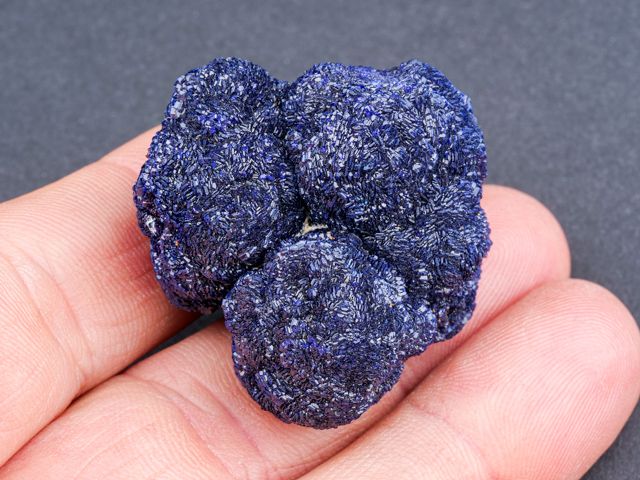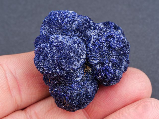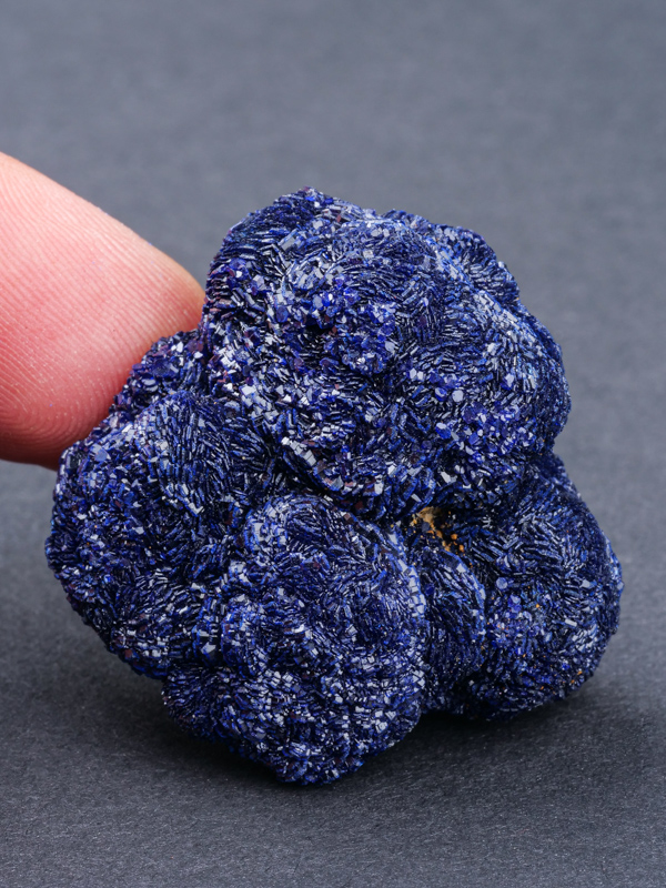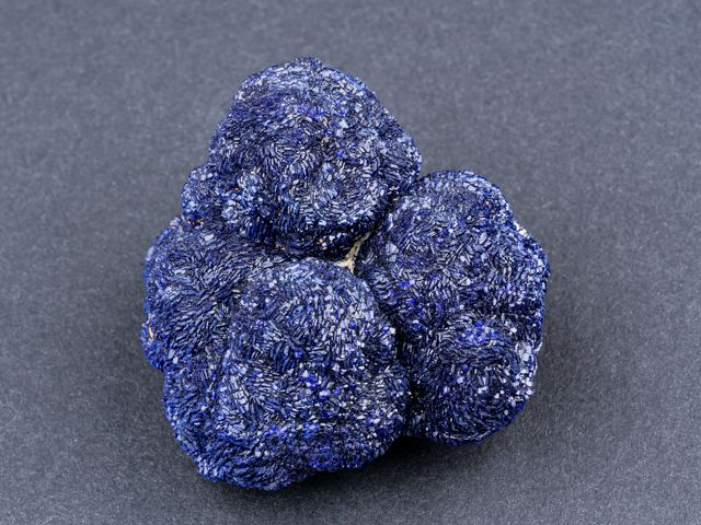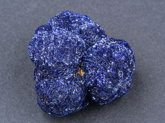 Velký, ale zároveň i pěkný, velmi kompletní a výrazně sytě barevný vzorek azuritu z lokality Rubcovsk.Velký, ale zároveň i pěkný, velmi kompletní a výrazně sytě barevný vzorek azuritu z lokality Rubcovsk. Členitá drúza je ukončená ze všech stran. Jedná se o nepoškozený vzorek. Navzdory kvalitě a množství materiálu z Rubcovsku bylo na lokalitě překvapivě málo vzorků uhličitanů mědi jako azurit nebo malachit.