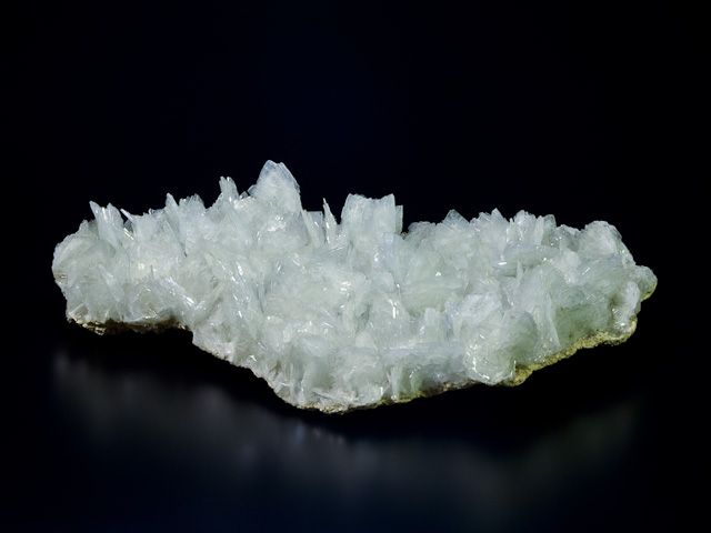Blue-gray translucent barite crystals to 35 mm in a showy cluster. Very lustrous crystals on nice matrix. 2 damaged crystals.