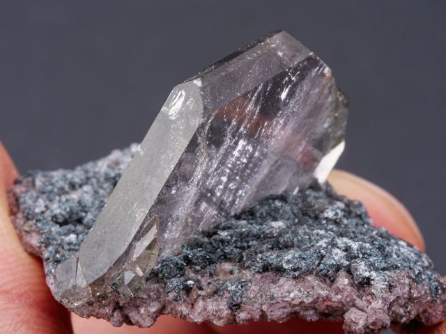 Estetická ukázka modrošedého barytu na matrix z lokality Cerro Warihuyn. Výrazně ostrý krystal barytu s vysokým leskem. Luxusní vzorek do sbírky.