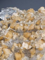 This historic specimen is from Pribram, Bohemia, Czech Republic.This historic specimen is from Pribram, Bohemia, Czech Republic. Bournonite specimens are very uncommon from the historic mines at Pribram. Quartz matrix overgrown with Siderite and Bournonite up to 1,6 cm.