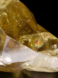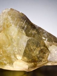 Zajímavý krystal přírodního citrínu z Českomoravské vrchoviny. Jedná se o deluviofluviálně přenesený vzorek (matný povrch na polovině krystalu). Tento typ kamenů se vyvětráním dostává do svahových sutí a zvětralin, kde je na ni možné narazit např. na podzim po orbě. Krystal je ukončený a má přirozenou příjemně nažloutlou barvu. Poměrně vysoká čistota dovoluje podobný materiál brousit. V podstatě nepoškozený dvojkrystal. Velmi žádaný materiál z Vysočiny.