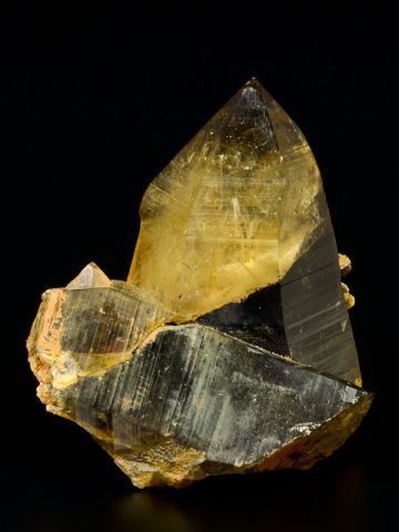 Krásný ukončený krystal tmavé záhnědy a citrínu - kámen z lokality Dolní Bobrová - Valy.Krásný ukončený krystal tmavé záhnědy (v dolní části pod zlomem) a citrínu (v horní části krystalu) - kámen z lokality Dolní Bobrová - Valy. Jedná se o velmi starý sběr - 1946 (původní etiketa je součástí prodeje). Krystal o velikosti 6,6 cm je lesklý a při prosvícení průhledný. Tento krystal nasedá na další neukončený krystal záhnědy. Krystal má na boku řadu menších krystalů muskovitu. Trhlina podél obou krystalů je přírodního původu. Předpokládá se, že spodní krystal byl přírodně oddělen a dolepen zpět. Na první pohled to není viditelné. Hezký vzorek do sbírky!