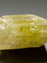 Ukončený krystal světle žlutého danburitu z ruské lokality Malkhan. Krystal je lesklý. Zajímavý vzorek do sbírky.