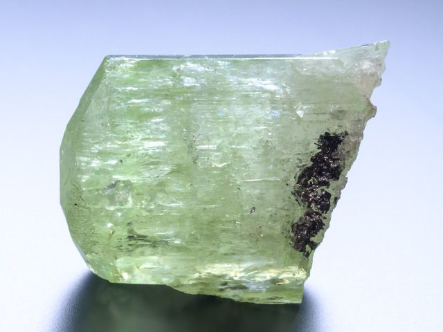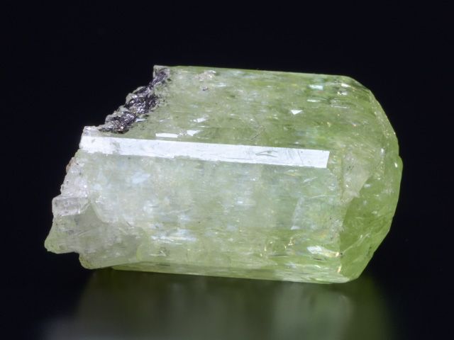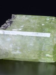 Diopsid tvoří světle zelený, skelně lesklý, průsvitný, podélně rýhovaný, protažené krystaly dosahující velikosti až 31 mm. Super vzorek z Tanzánie.