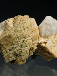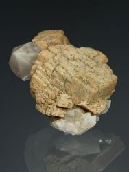 This is preaty dolomite and quartz cluster from Dalnegorsk. It has complex, stepped dolomite crystals stacked one atop the other and associated with quartz crystals. It is one of the more elegant specimens of this habit for last years.