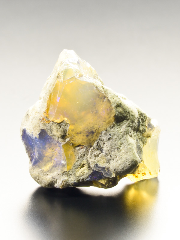 Drahé opály byly v Etiopii objeveny poměrně nedávno, první ukázky se objevili na trhu kolem roku 1994 i když naleziště místní lidé znali velmi dlouho. Drahé opály se na této lokalitě nachází uvnitř hlíz uložených v souvislé vrstvě sopečného popela (tufu) mocné asi 3 metry mezi vrstvami zvětralého rhyolitu. Tento konkrétní kámen má výraznou sytou opalizaci a hodí se nejen na další zpracování, ale i do sbírky v surovém stavu ve kterém se nyní nachází. Kámen je co se týká opálové části velmi čistý.
