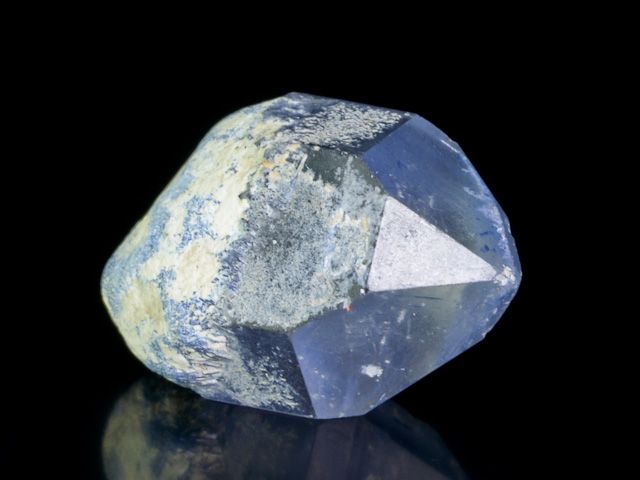 Lesklý krystal křišťálu s hojnými inkluzemi jemných vláskovitých xx dumortieritu výrazně modré barvy.Lesklý krystal křišťálu s hojnými inkluzemi jemných vláskovitých xx dumortieritu výrazně modré barvy. TOP novinka!