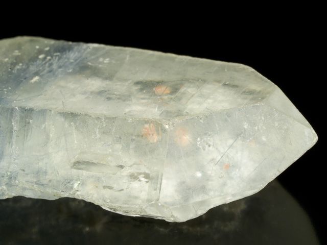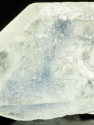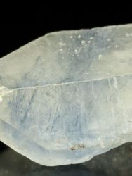 A unique example of dumortierite included quartz crystals from Brazil.A unique example of dumortierite included quartz crystals from Brazil. This specimen consists of quartz crystal that host rich, colorful inclusions of dumortierite. The color is really quite unique and has an almost cornflower blue hue in person. The color is pronounced, rich, and quite unlike other blue inclusions sometimes seen in quartz crystals. The crystal is doubly terminated. The crystal has sharp, glassy faces and marked clarity. Rare and attractive material!