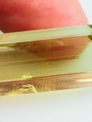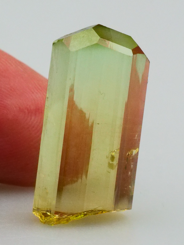 Hezký ukončený krystal elbaitu z relativně nové lokality Goma. Krystal má jedinečnou světle zelenou barvu v horní části krystalu, přecházející do velmi světle žluté barvy v dolní polovině krystalu. Sběratelsky zajímavý kámen dobré kvality vhodný teoreticky i do TOP šperku. Kolik takto čistých turmalínů jste v poslední době viděli na trhu?