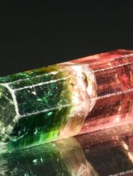 Naprosto luxusní ukončený krystal elbaitu z významné brazilské lokality Cruzeiro mine.Naprosto luxusní ukončený krystal elbaitu z významné brazilské lokality Cruzeiro mine. Krystal má jedinečnou světle malinovou barvu v dolní části krystalu, přecházející do zelené a modré barvy v horní polovině krystalu. Sběratelsky zajímavý kámen TOP kvality. Krystal se bez nasvícení jeví více tmavý.