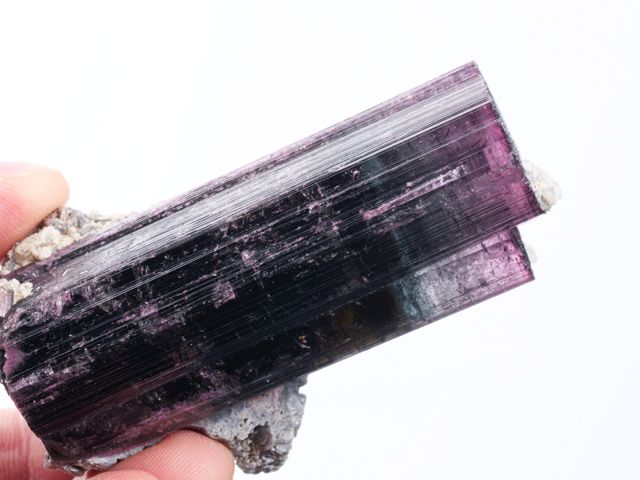 This is a superbly crystallized, glassy and transparent, green/blue pink specimen from the famous Pederneira Mine.This is a superbly crystallized, glassy and transparent, green/blue pink specimen from the famous Pederneira Mine. It features a gemmy crystal reaching 7.3 cm. No damage.