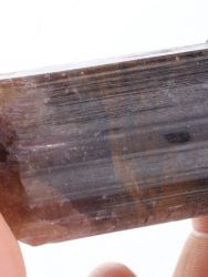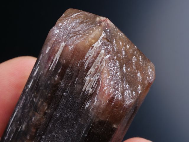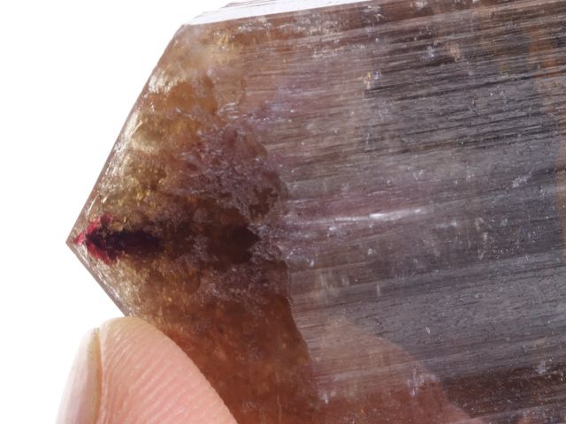 A gorgeous, gemmy and lustrous, tourmaline crystal, perfectly terminated. Base dark brown and red in termination. No damage.