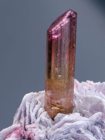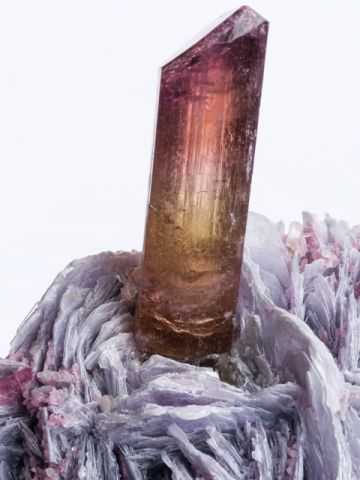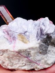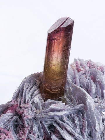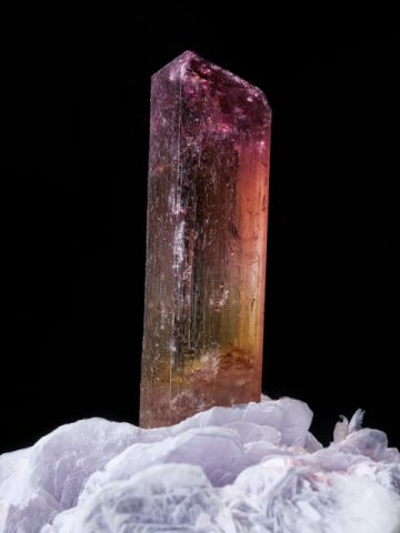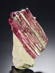 A very nice matrix example of the tourmaline variety elbaite from a find in 1980s. This one is almost pristine and has glassy lustre. It is complete all around, and very symmetrical - terminated! 1x repair.