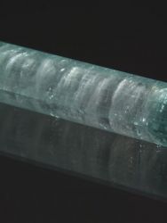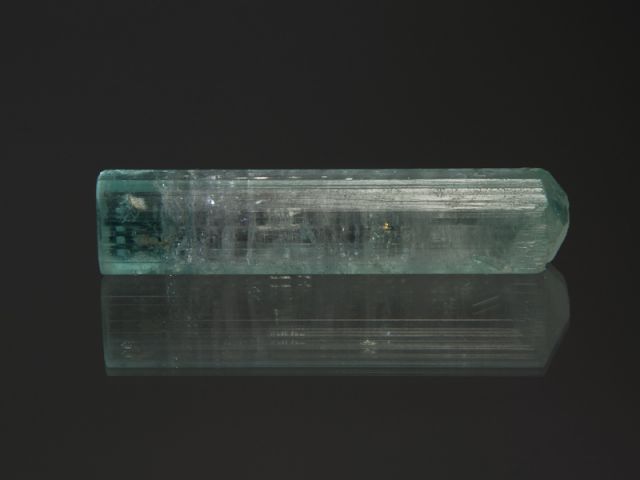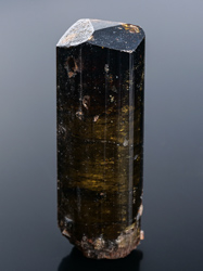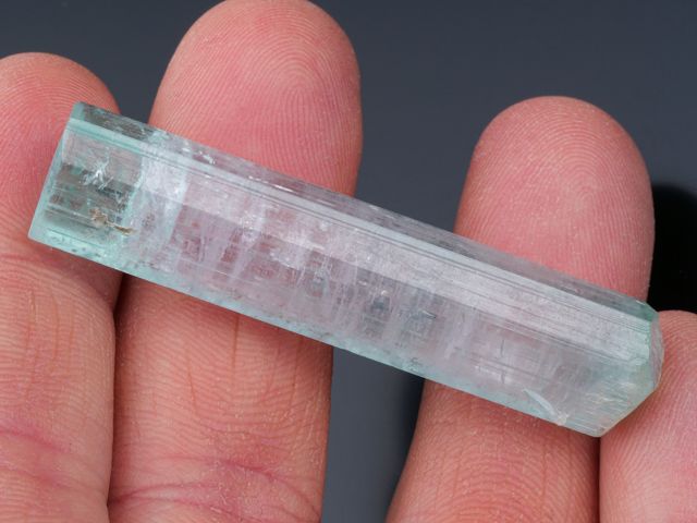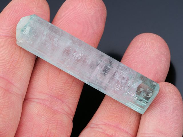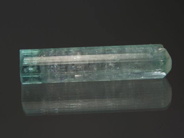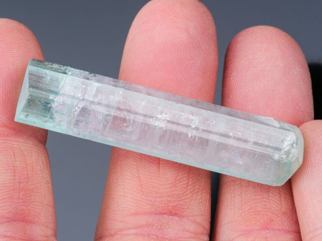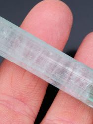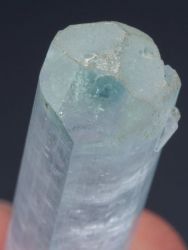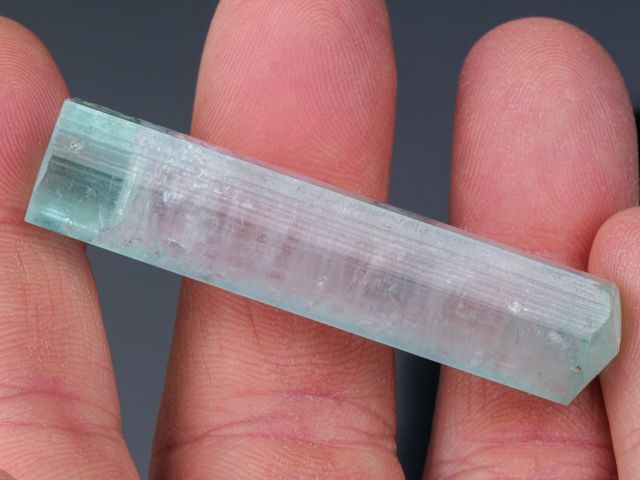 Elbaite tourmaline double terminated crystal. The elbaite is pinkish-green throughout with a green termination zone. No damage is visible to the unaided eye.