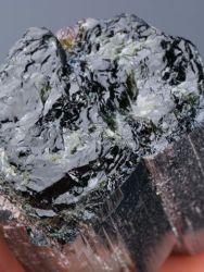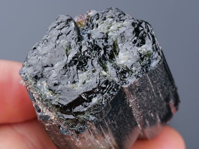Velmi pěkný ukončený dvojkrystal elbaitu z lokality Anjanabonoina. Krystal má velmi tmavě hnědou barvu v dolní části krystalu, přecházející do oranžové barvy v horní části ukončení - vše zakončeno jemnou vrstvou růžové barvy. Sběratelsky zajímavý kámen bez poškození.