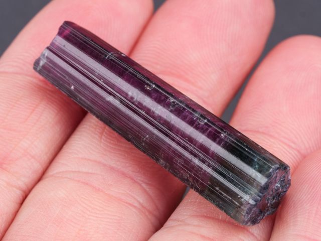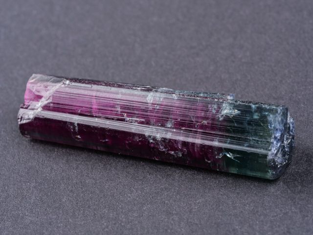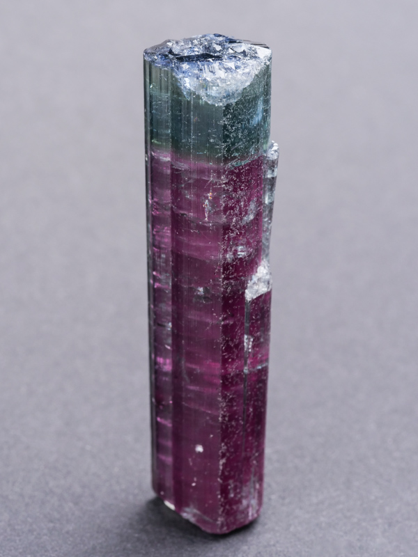 Fine and very rare green and pink terminated watermelon tourmaline elbaite. Great sharp colored specimen. Perfect lustrous crystal, very well formed, incredible colors, Gemmy. The crystal edges show minor chipping and wear.
