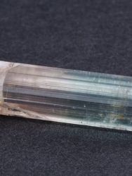 Velmi hezký ukončený krystal elbaitu z relativně nové lokality Goma. Krystal má jedinečnou světle růžovou barvu ve spodní části krystalu, přecházející do světle modrozelené barvy v horní části krystalu. Sběratelsky zajímavý kámen dobré kvality vhodný teoreticky i do šperku. Těžba na lokalitě byla ukončena a vzhledem k situaci v této zemi nevypadá, že by se nové kameny v příštích letech objevili znovu na trhu.