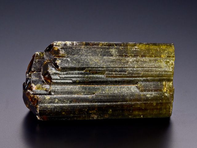 A tourmaline from Siberia with very attractive coloration - pink (inside) and green/brown (edges).A tourmaline from Siberia with very attractive coloration - pink (inside) and green/brown (edges). The termination has less luster and it is in very good condition. The interior is partially gemmy.