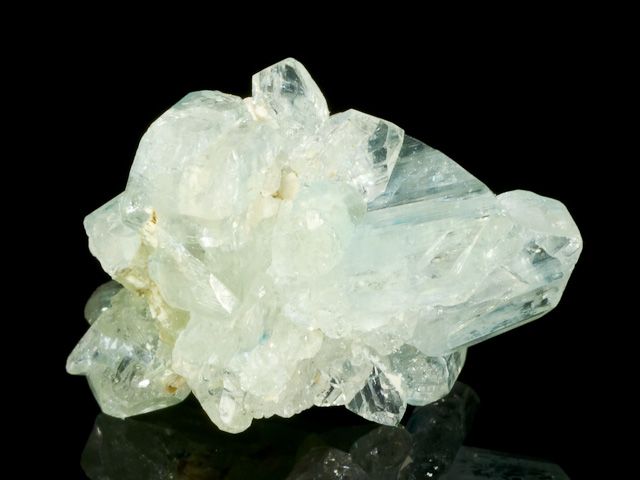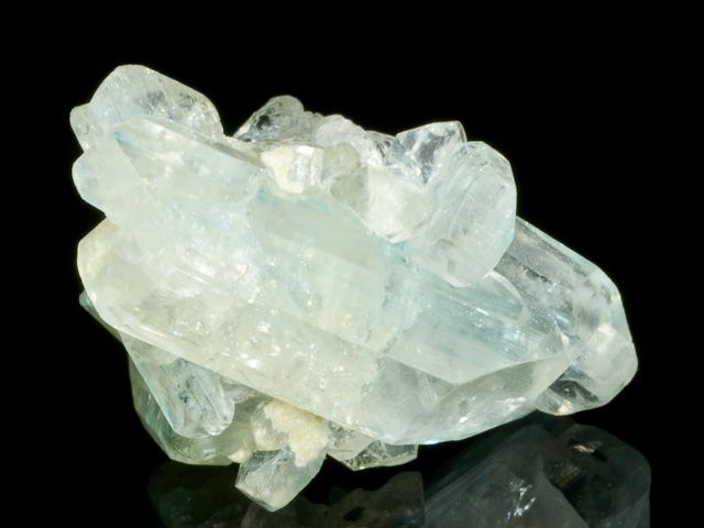 Rare plate of many interconnected Euclase crystals with color varying from colorless to blue in internal zones.Rare plate of many interconnected Euclase crystals with color varying from colorless to blue in internal zones. Clusters of Euclase are rare. All crystals complete and undamaged except around the outside edges. This is a new find - 2015!