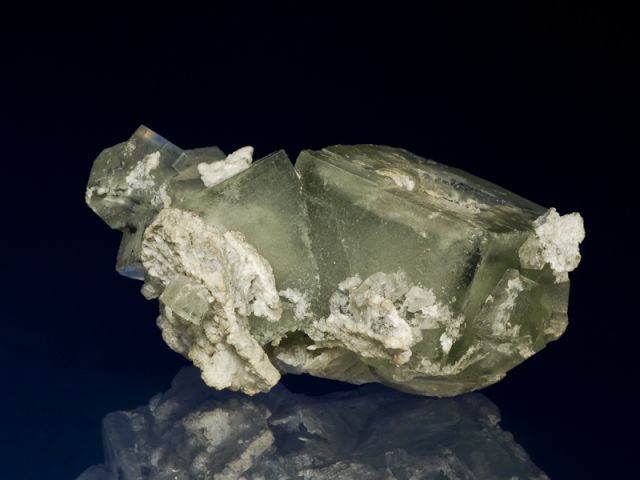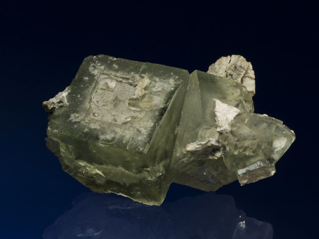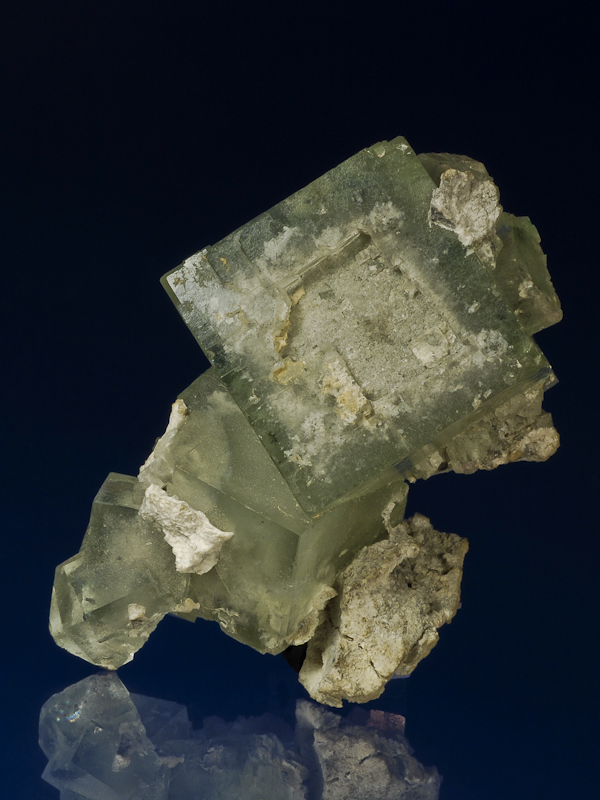 Srostlice jemně zelených krystalů fluoritu, které jsou téměř plovákem. Na zadní straně je drobná nárůstová ploška, jinak je vzorek na všech místech ukončen. Lesklému a nepoškozenému vzorku dominují dvě hlavní krychle z nichž největší má na nejdelší hraně velikost 3,1 cm. Ve skutečnosti je barva mírně sytější a krystaly se jeví více čisté.